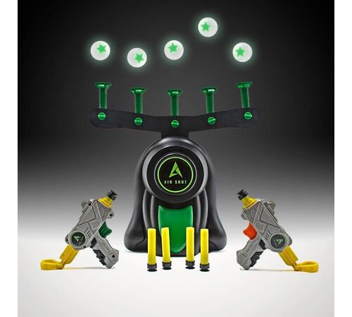 - Τεστάρετε τις ικανότητές σας στη σκοποβολή με τους 5 φωσφοριζέ στόχους που αιωρούνται και τα 6 βελάκια από αφρώδες υλικό που εκτοξεύονται από δύο blasters !
