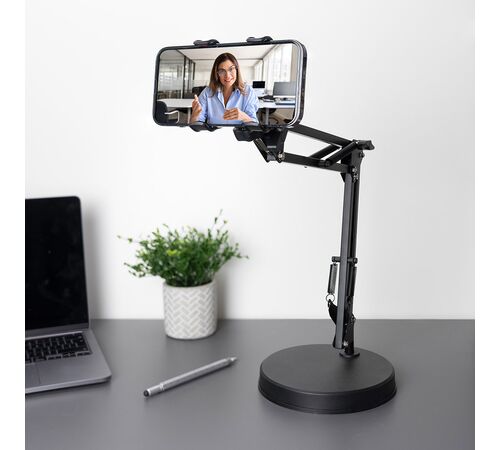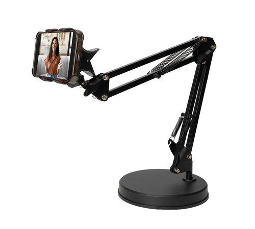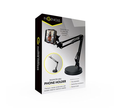 To Balanced Arm Phone Holder είναι μια μεταλλική, ρυθμιζόμενη βάση για smartphone, σχεδιασμένη για hands-free χρήση στο γραφείο, το σπίτι ή on-the-go. Με στιβαρή κατασκευή και βραχίονα που προσαρμόζεται, κρατάει το κινητό σταθερό για βιντεοκλήσεις, streaming ή καθημερινή χρήση χωρίς να χρειάζεται να το κρατάς στο χέρι