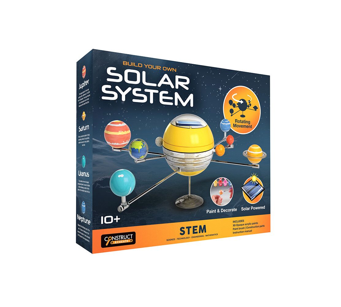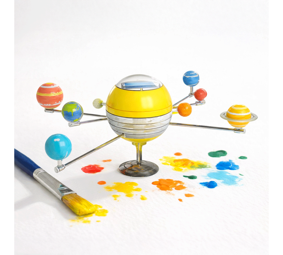 Η δημιουργικότητα συναντά την επιστήμη (STEM): αφού συναρμολογήσετε και δώσετε χρώμα στους πλανήτες με τις μπογιές που περιλαμβάνονται, μπορείτε να δείτε το δημιούργημά σας να ζωντανεύει! Το μοντέλο διαθέτει έναν έξυπνο μηχανισμό περιστροφής (rotating movement) ο οποίος τροφοδοτείται αποκλειστικά από ηλιακή ενέργεια, χωρίς να απαιτούνται μπαταρίες. Απλώς τοποθετήστε το κάτω από το άμεσο ηλιακό φως και παρατηρήστε τους πλανήτες να μπαίνουν σε τροχιά γύρω από τον Ήλιο!