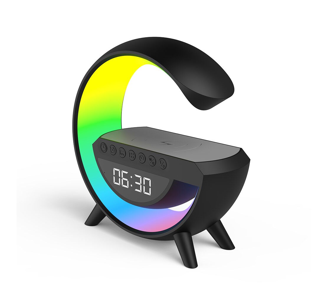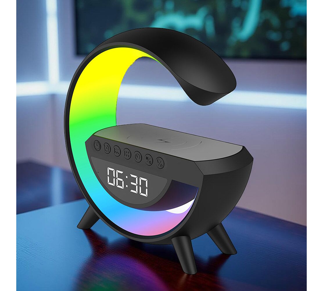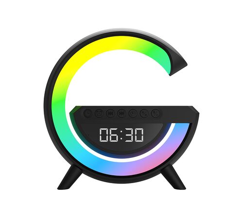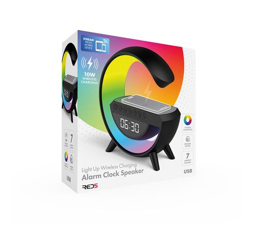 Αναδείξτε το κομοδίνο ή το γραφείο σας με αυτό το σύγχρονο gadget που συνδυάζει ξυπνητήρι, ηχείο Bluetooth, ασύρματη φόρτιση και φωτισμό ατμόσφαιρας σε ένα Συνδυάζει ηχείο, ασύρματη φόρτιση, ρολόι, ξυπνητήρι και RGB φωτισμό.  Με τεχνολογία Bluetooth, μπορείτε να συνδέσετε εύκολα το smartphone, το tablet ή το φορητό σας υπολογιστή για να απολαύσετε τις αγαπημένες σας μελωδίες με εκπληκτική καθαρότητα. Διαθέτει ψηφιακό ρολόι και λειτουργία ξυπνητηριού, η οθόνη LED διευκολύνει τον έλεγχο της ώρας με μια ματιά, ενω διαθέτει  μια βολική επιφάνεια ασύρματης φόρτισης, συμβατή με όλες τις συσκευές Qi. Ξεχωρίζει γιατί διαθέτει: