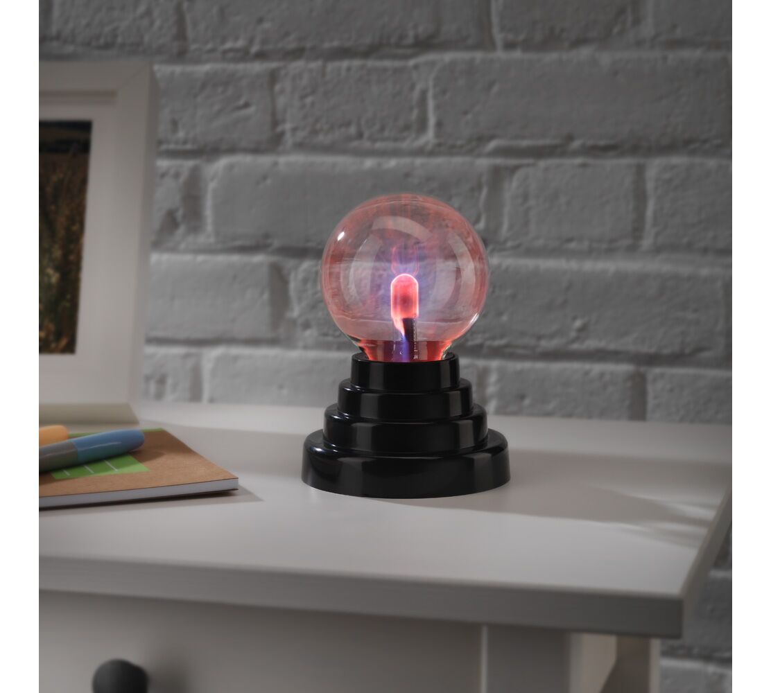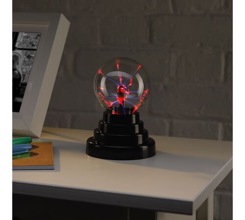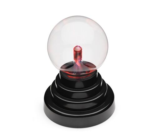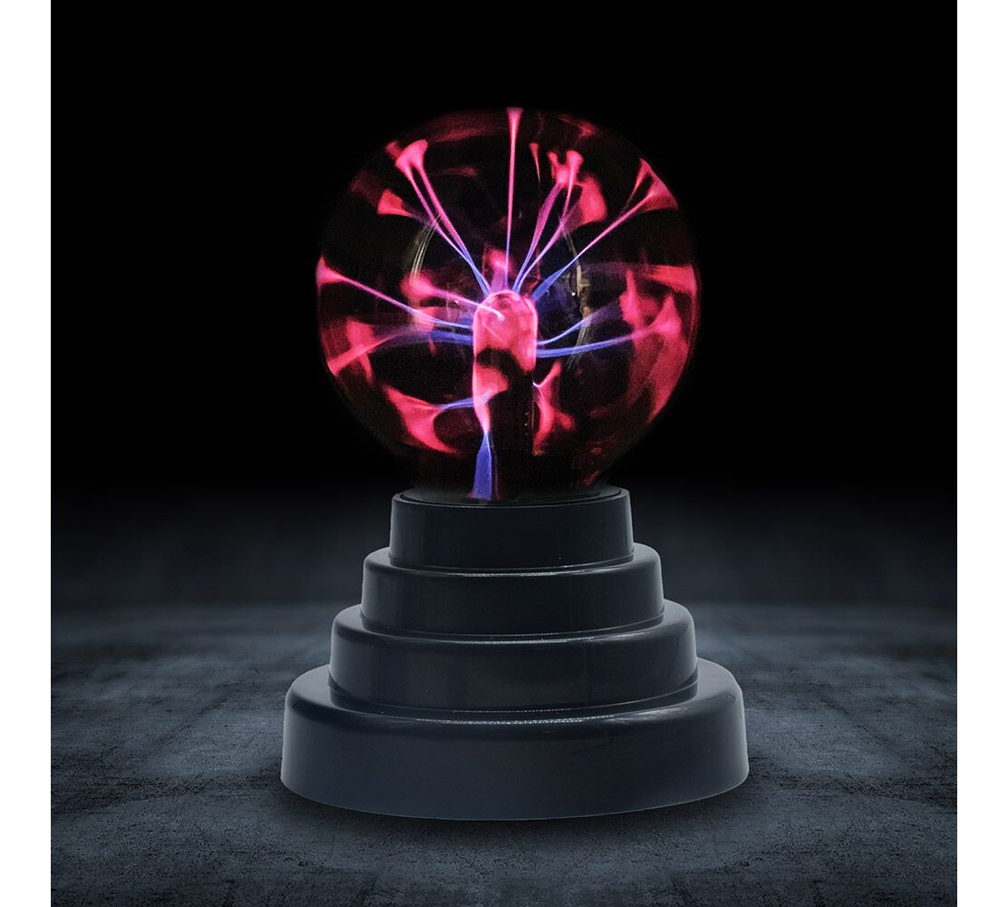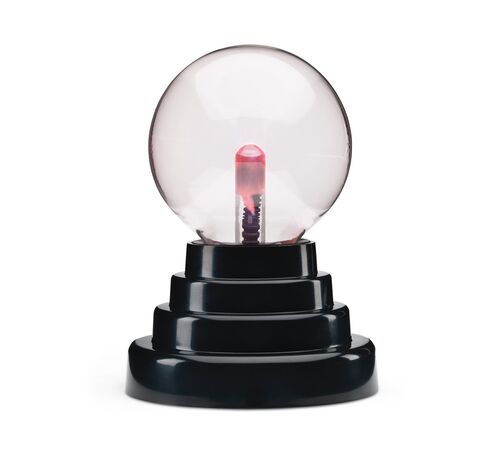 Στο κέντρο αυτής της γυάλινης σφαίρας ένας πυρήνας με υψηλό ηλεκτρικό δυναμικό, που περιβάλλεται από χαμηλής πίεσης αέριο (πλάσμα), προκαλεί ευδιάκριτες εκκενώσεις ηλεκτρονίων. Μπορείτε να επηρεάσετε το φαινόμενο αγγίζοντας την επιφάνεια της γυάλινης σφαίρας. Διάμετρος: 7,62 εκ.