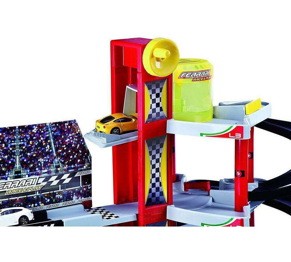 Δώστε στα παιδιά σας τη συγκίνηση των μηχανοκίνητων αγώνων με το σετ Bburago Ferrari RACE + PLAY WITH THE GARAGE. Αυτό το σετ περιλαμβάνει αυτοκίνητο Ferrari σε κλίμακα  1:43 και γκαράζ για μια ολοκληρωμένη εμπειρία παιχνιδιού."